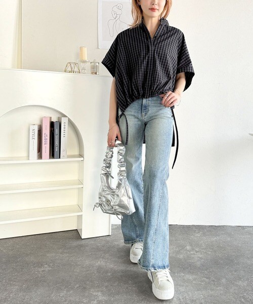 その日の気分に合わせてデニムやフレアパンツを合わせてもOK◎