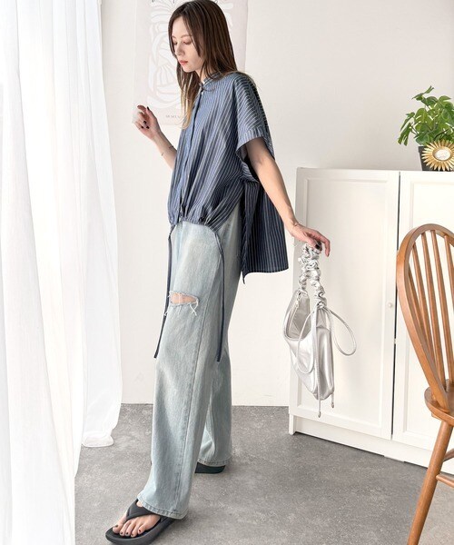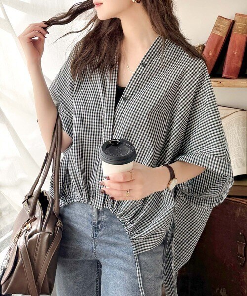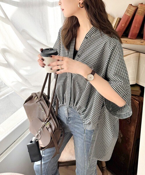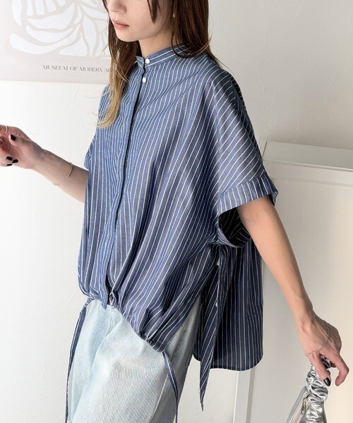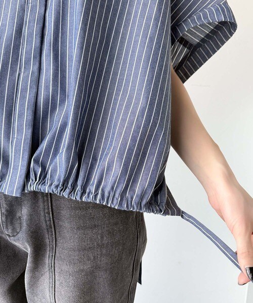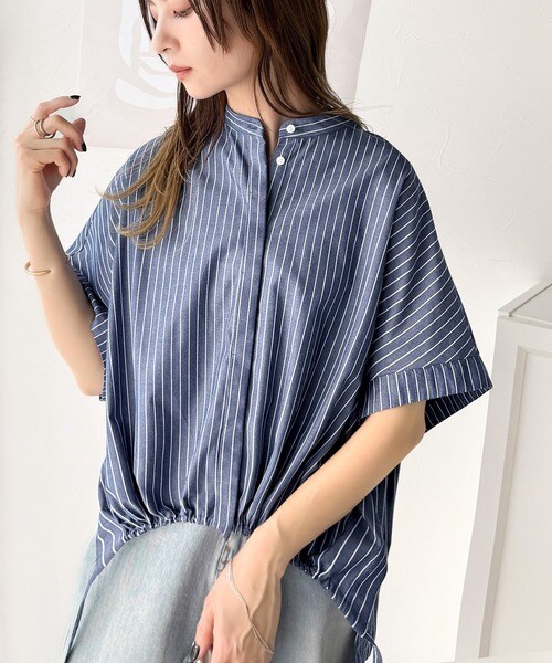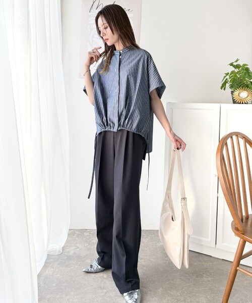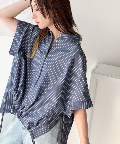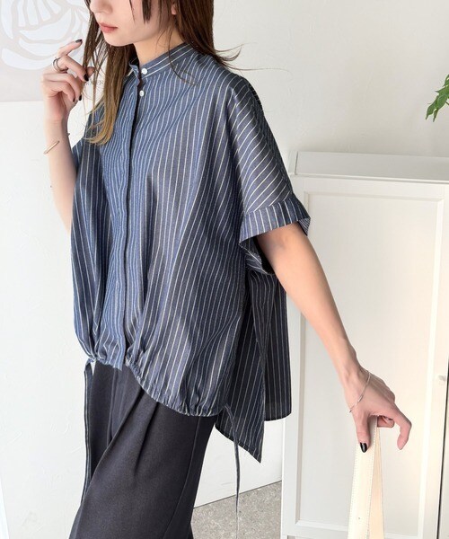たっぷりの前ドロストデザインが目を引く、大人の抜け感シャツ。