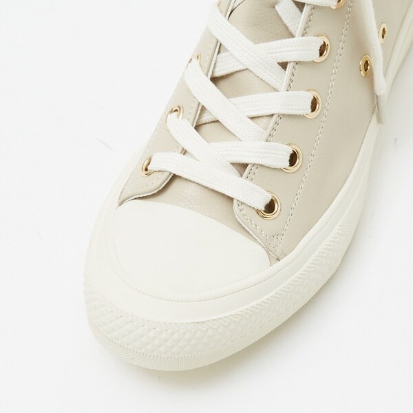 ツヤ感のある合皮素材×ゴールドのハトメが高級感を演出しカジュアルすぎないスニーカー。