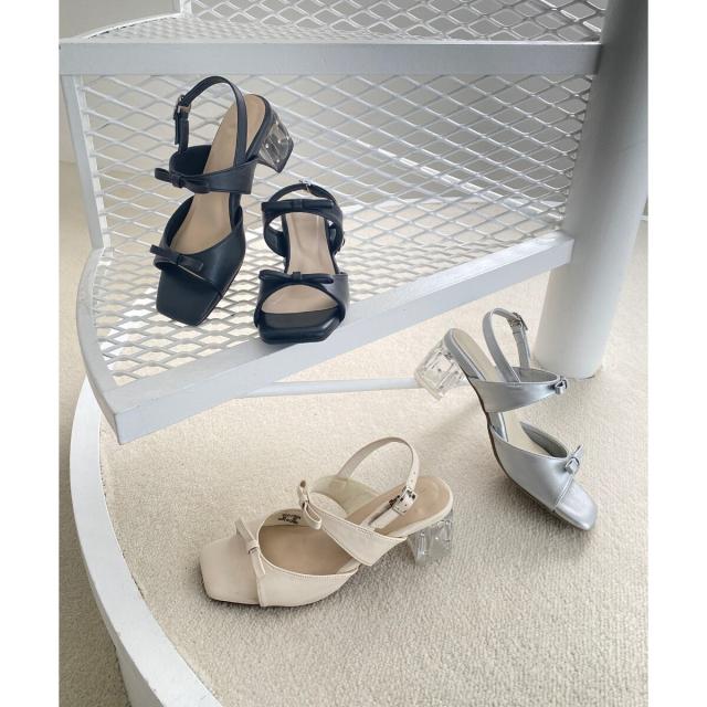 クリアビジューヒールリボンサンダル