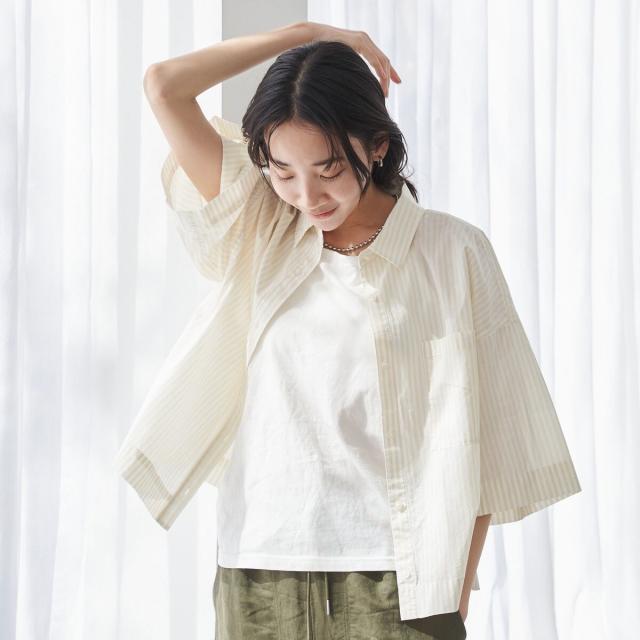 コットン100%の優しい肌触りと、軽さが魅力の半袖シャツ。