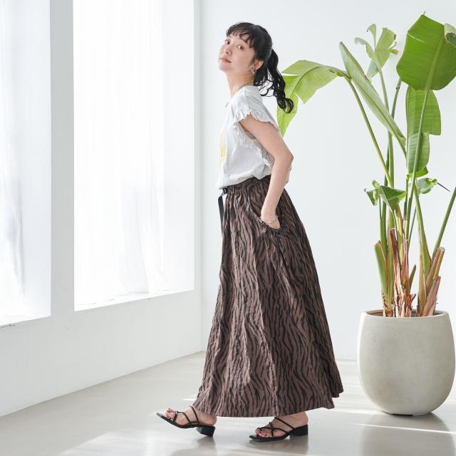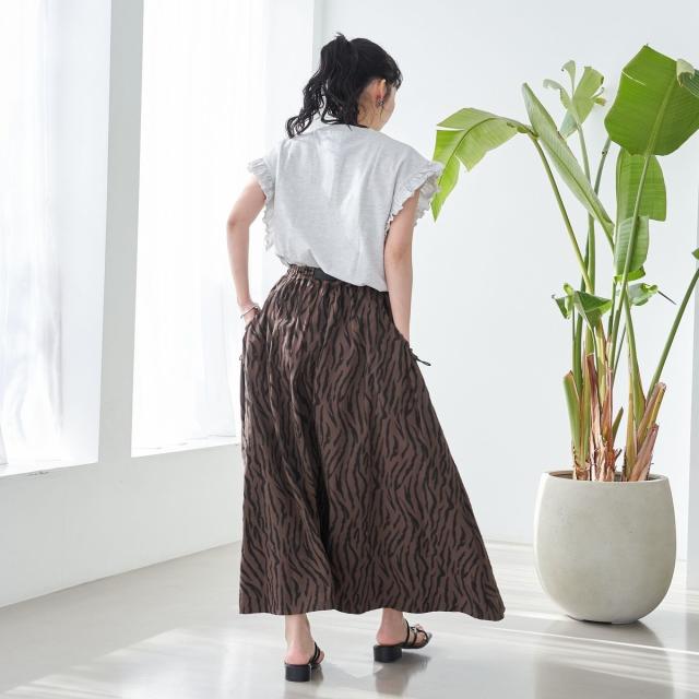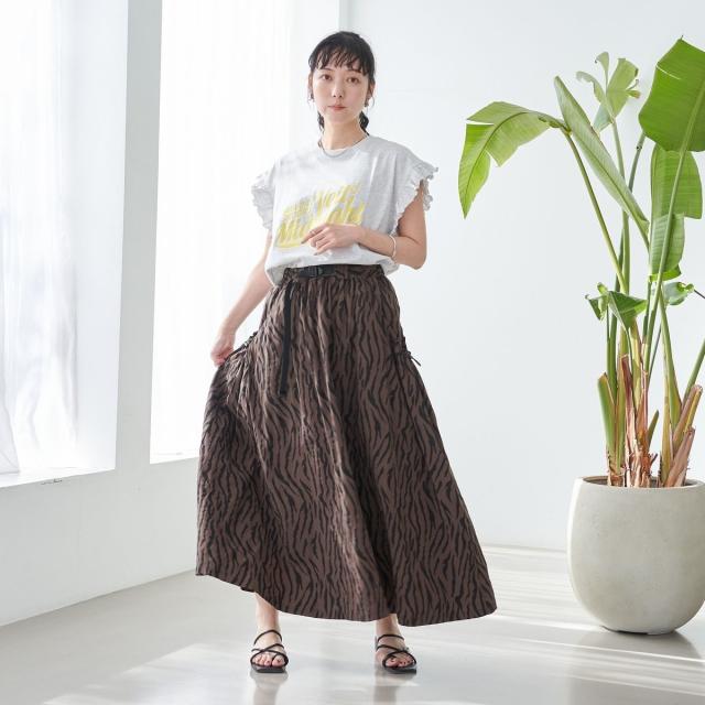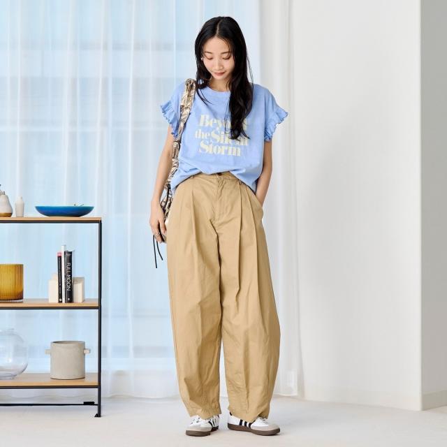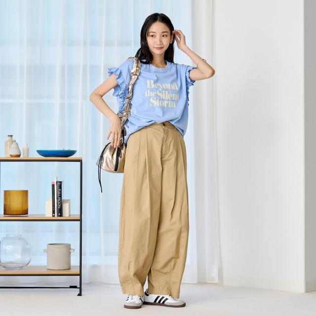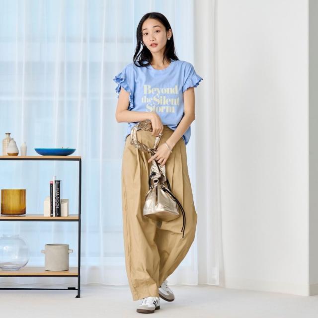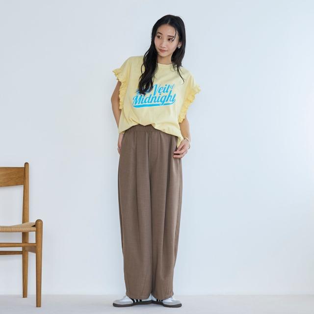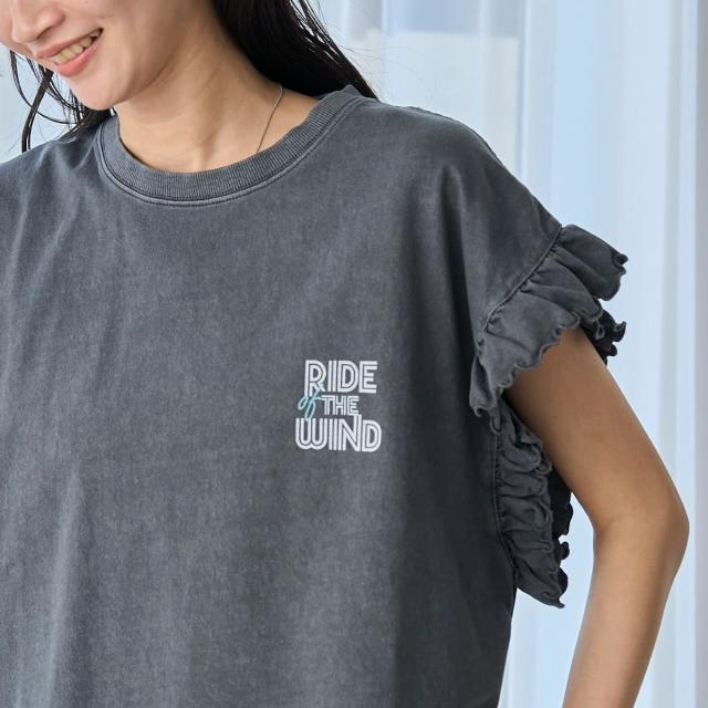 春夏気分を上げてくれるカラーと可愛らしいフリル袖が魅力のプリントTEE。