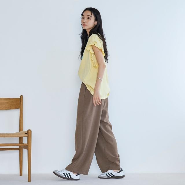 ・大きめのフリルデザインがヘルシーな印象のトップス