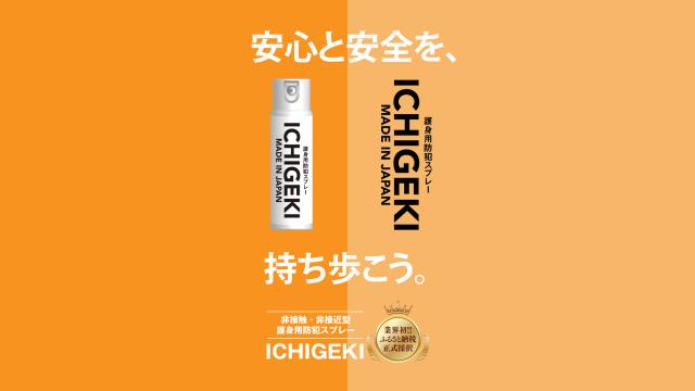 護身用防犯スプレーICHIGEKIは、暴漢などから身を守る際、相手に噴射し、ひるんだ隙にその場から速やかに逃げるための緊急対応製品としてご使用ください。本製品は離れた場所からでも効果的に攻撃が可能な「非接触型・護身用スプレー」です。
