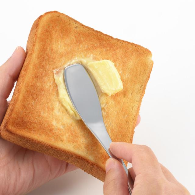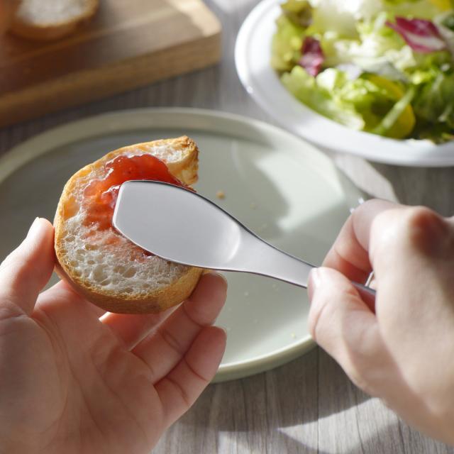ジャムなどのビンの隅まですくいやすく、パンに塗りやすい形状のジャム&バターヘラです。バターナイフとしても使えます。