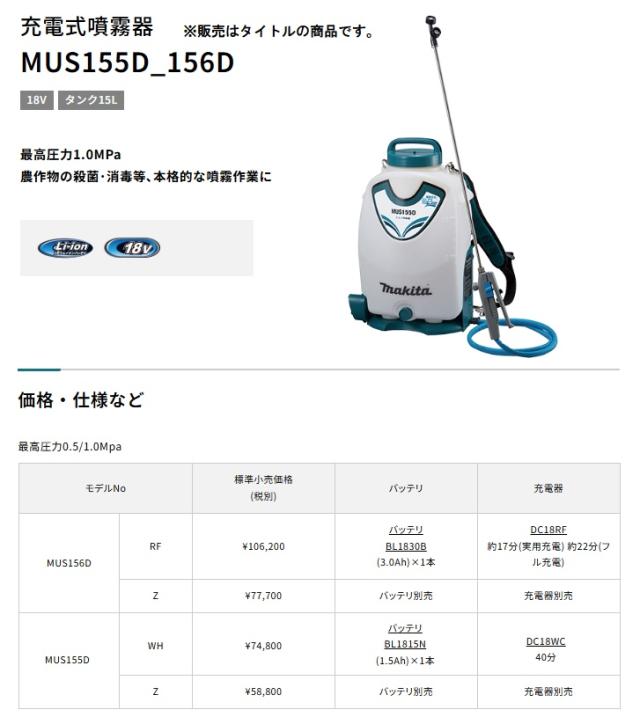 マキタ MUS155DZ 充電式噴霧器 本体のみ 18V対応 makita セット品バラシ