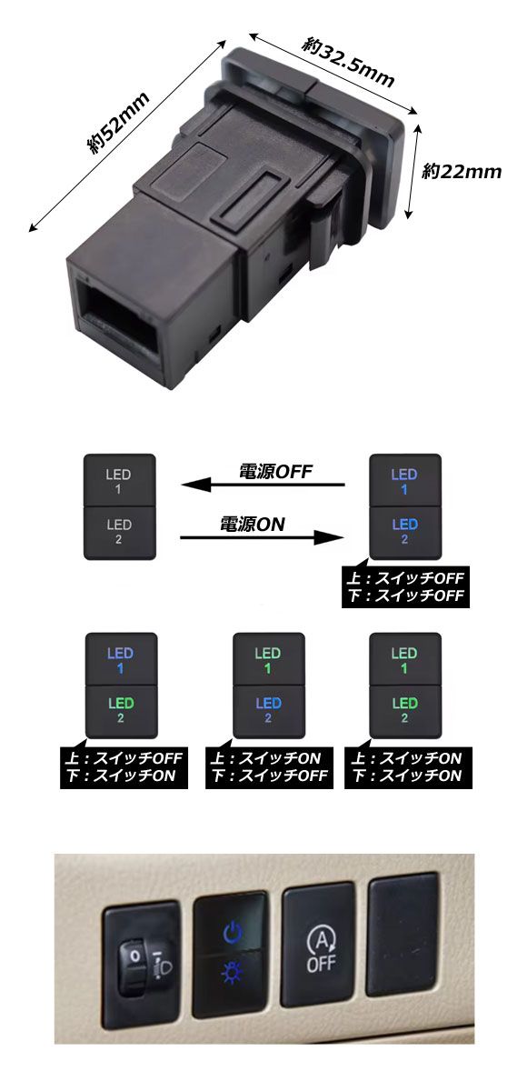 増設用 LEDスイッチ ブルー/グリーン点灯 タイプ44 12V トヨタ汎用 AP-EC922-T44