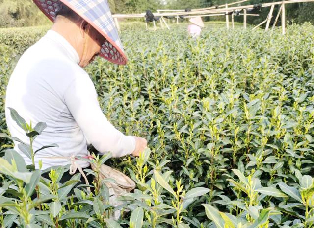 葉が傷ついて酸化しないように指の腹で一芽一葉、
