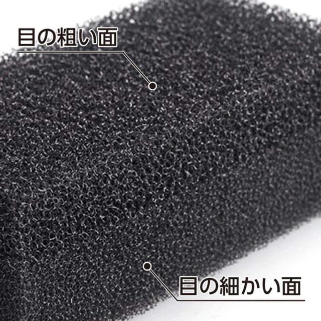 色々な汚れに対応できるよう、目の粗いスポンジと目の細かいスポンジの「2層構造」になっています。目の粗いスポンジ面はゴシゴシ洗いたい時に、目の細かいスポンジ面は、ソフトに洗いたい時におすすめです。