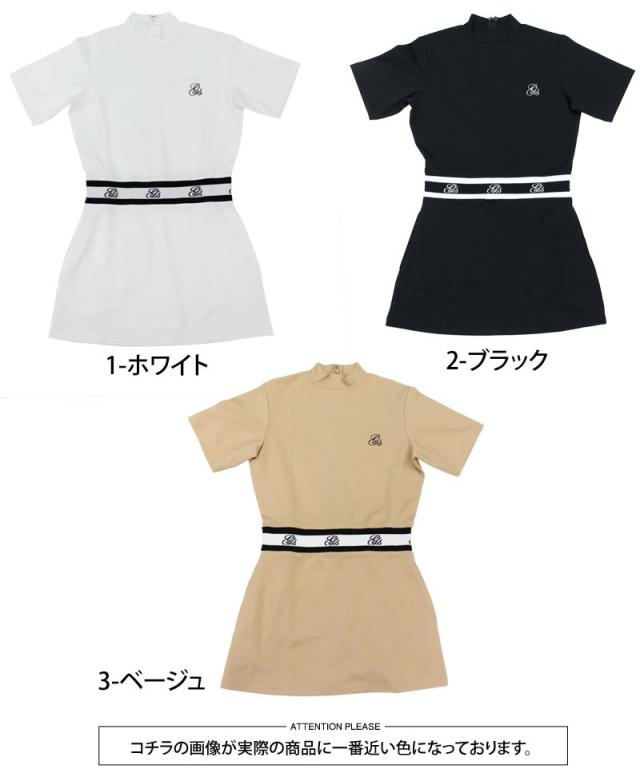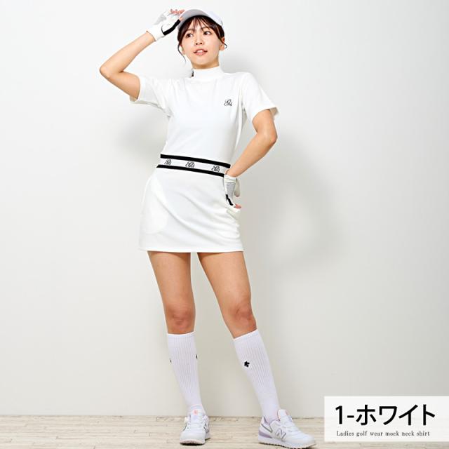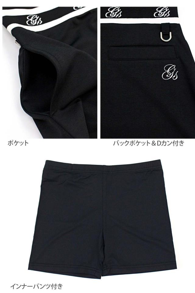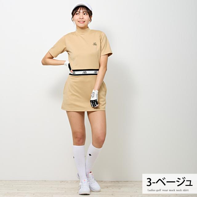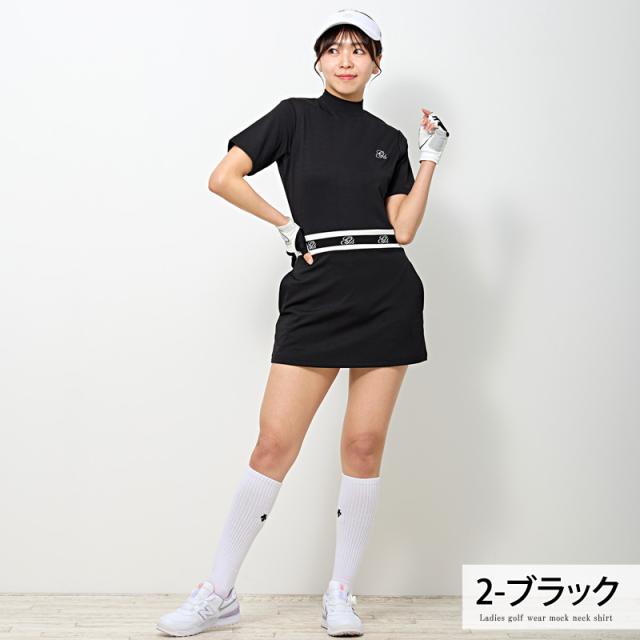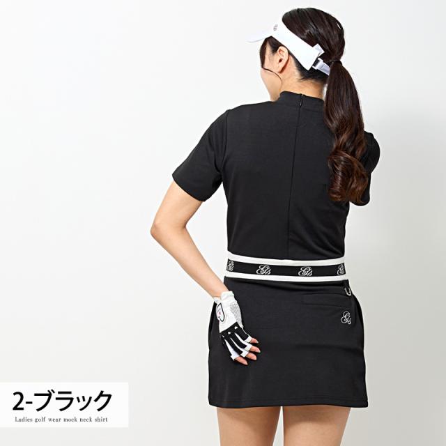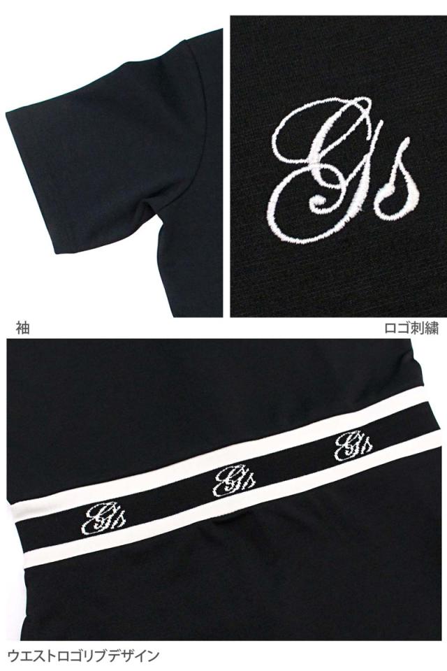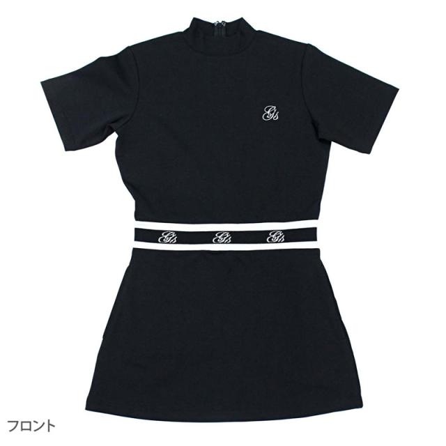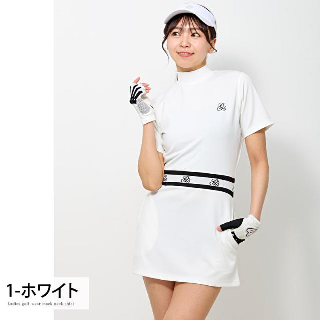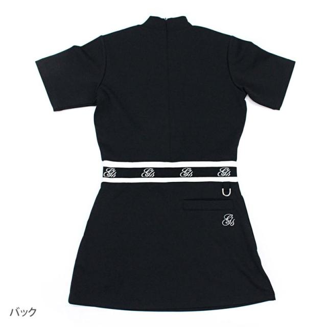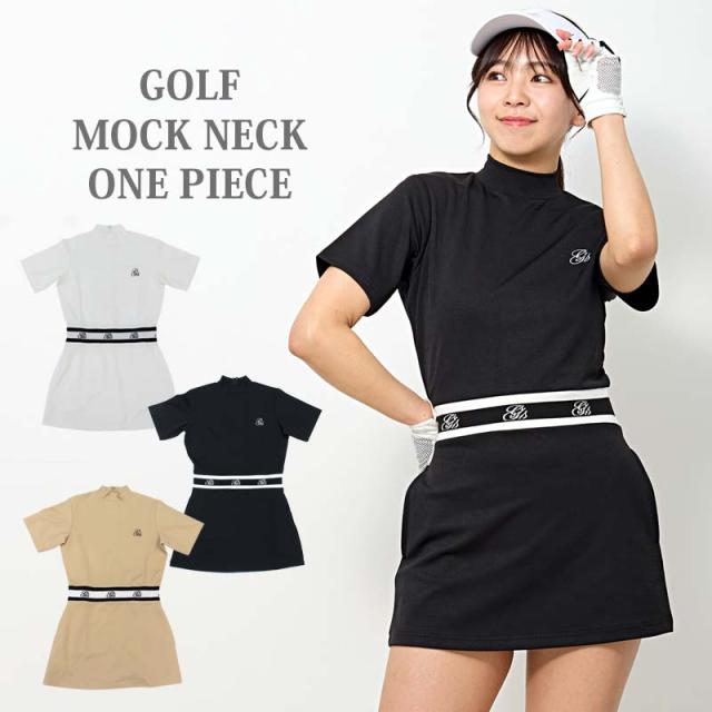 送料無料 ゴルフウェア レディース ワンピース モックネックシャツスカート上下 インナーパンツ付セット gs GOLF ハイネック 半袖 ストレッチ ウエストロゴリブ 刺繍 無地 おしゃれ かわいい 韓国系 春夏