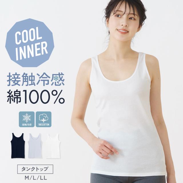 綿100%接触冷感フライス タンクトップ レディース 春夏 接触冷感 綿 フライス編み フィット感 ひんやり シルケット加工 L6531L-E