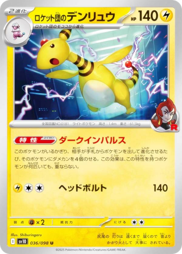 ポケモンカードゲーム SV10 036/098 ロケット団のデンリュウ 雷 (U アンコモン) 拡張パック ロケット団の栄光