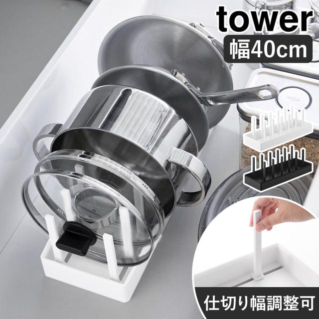 [ シンク下幅調節鍋蓋&フライパン収納スタンド タワー W40 ]山崎実業 tower フライパンスタンド シンク下収納 フライパン収納 キッチン収納 鍋 蓋 なべ フライパン立て 縦 幅40cm おしゃれ yamazaki 公式 モノトーン ブラック ホワイト 1361 1362