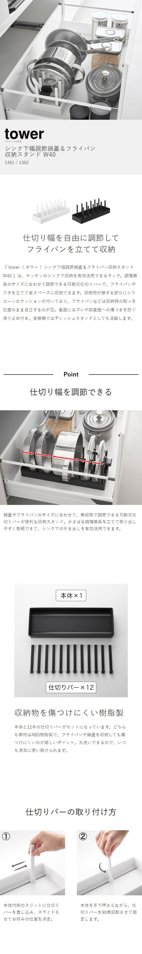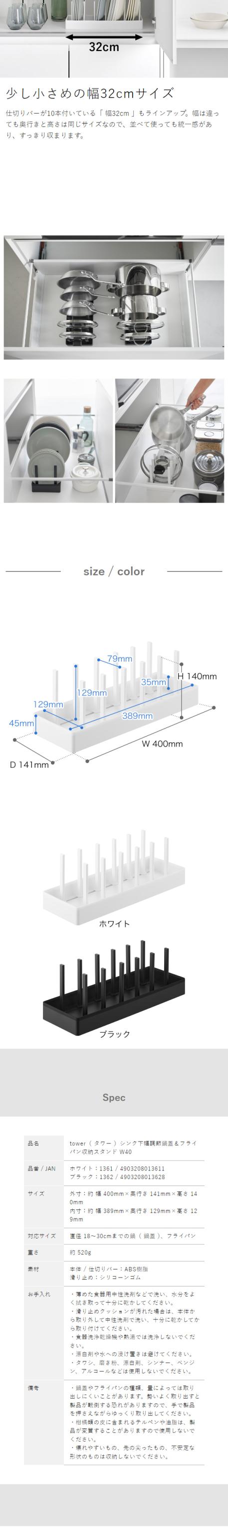 ■ シンク下幅調節鍋蓋&フライパン収納スタンド タワー W40 1361 1362