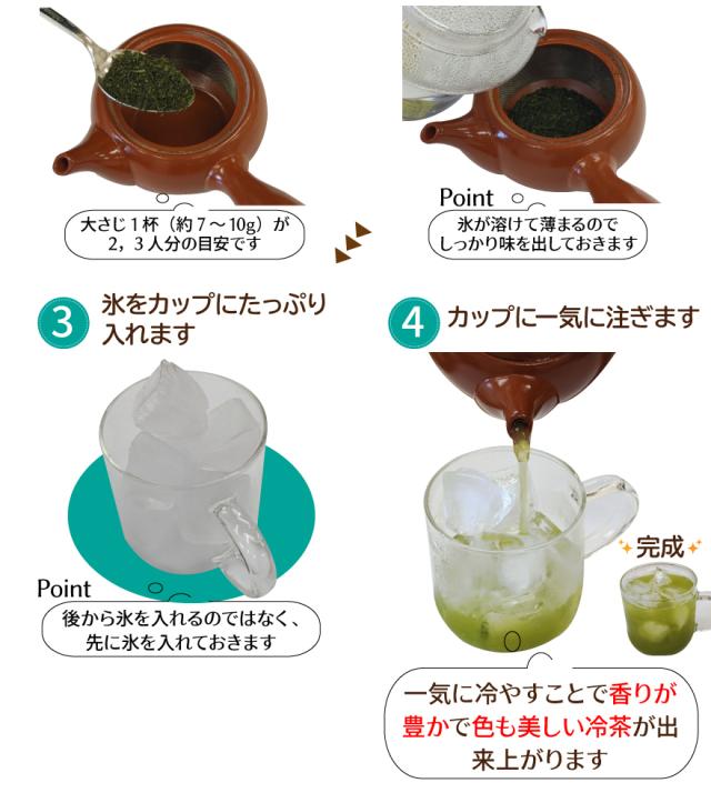 湯冷まししたお湯で淹れ、ゆっくりと廻しながら注いでいただくと深いコクと上品な甘みが楽しめます。ぜひ、当園の最高級品をご堪能ください。