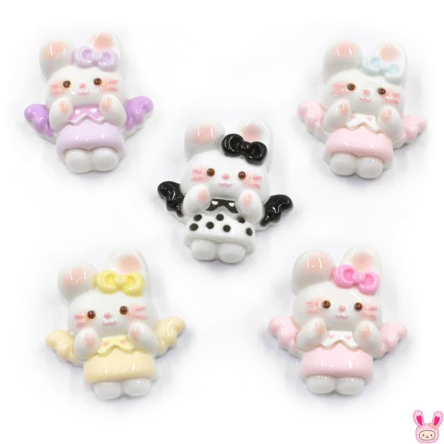 デコパーツ 白いうさぎの天使パーツ 4個