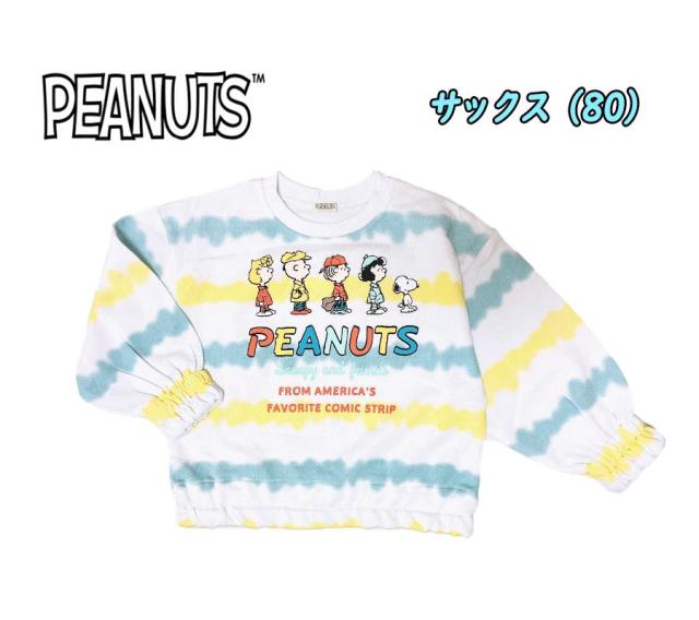【メール便送料無料】PEANUT スヌーピー スウェット トレーナー 長袖 ボーダー風タイダイ柄 ミニ裏毛 トップス ベビー/キッズ服 チャーリーブラウン 旅行 公園 プレゼント ギフト お誕生日 お祝い 双子コーデ (221153204 tk190023)