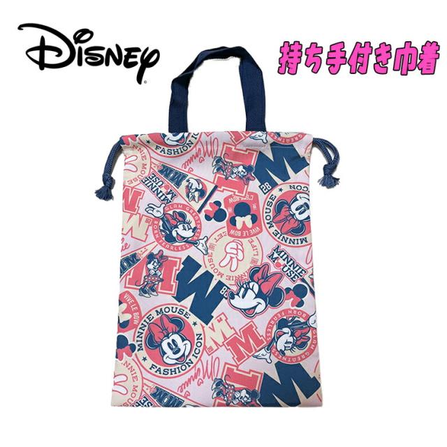 【メール便送料無料】Disney ミニーマウス 持ち手付き巾着 単品 ピンク 総柄 キャラクター 体育館シューズ入れ 上履き入れ 入園 入学 新学期 お祝い プレゼント ギフト 2025年度 (D7235PN-7 aw110025)