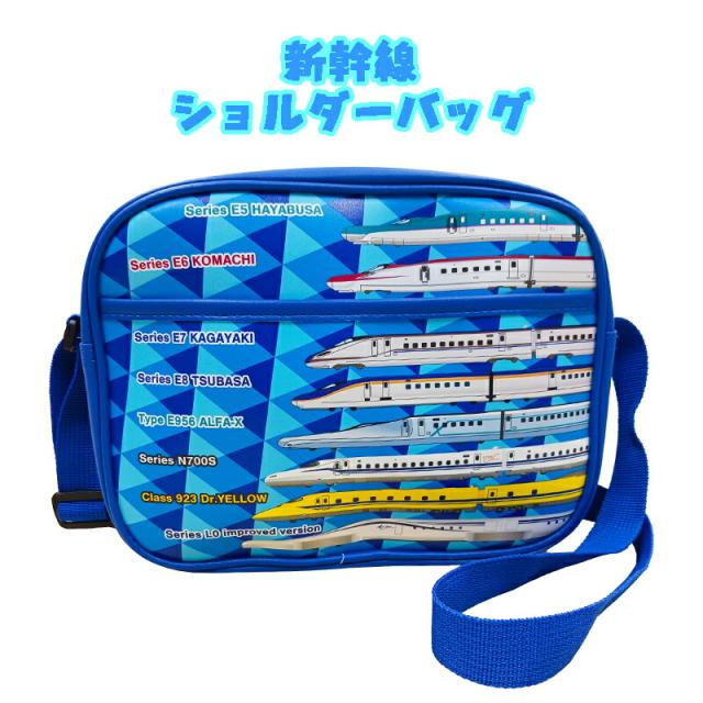 【1点までメール便送料無料】新幹線 8車両(はやぶさ/こまち/かがやき/つばさ/ALFA-X/N700S/ドクターイエロー/リニアL0系) ショルダーバッグ ブルー 通園バック プレゼント 入園 入学 お祝い 幼稚園/保育園 (jrhtn-042 asa270025)