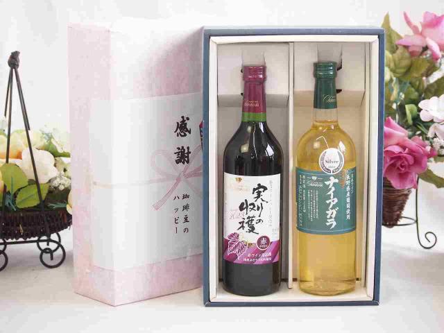 感謝の贈り物ボックス 国産やや甘口赤ワインと国産ワインセット(長野県産葡萄使用 ナイアガラ白ワイン やや甘口(山梨県)720mlヴィンテージ実りの収穫 赤ワイン720ml