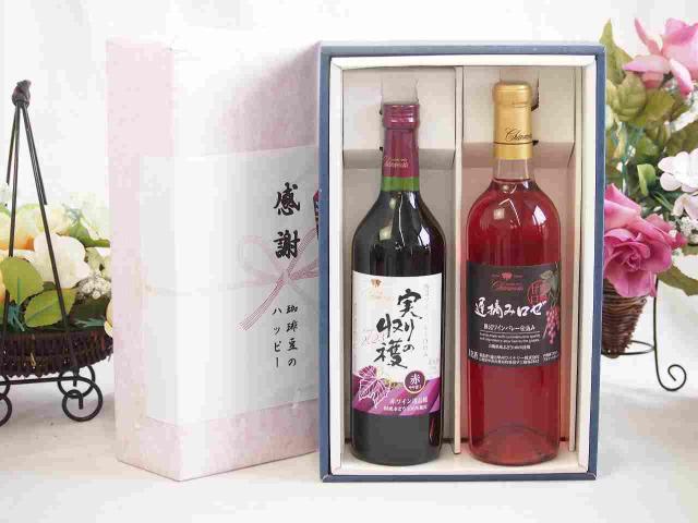 感謝の贈り物ボックス 国産やや甘口赤ワインと国産ワインセット(遅摘みロゼ 完熟甘口ワイン 甘口(山梨県)720mlヴィンテージ実りの収穫 赤ワイン720ml