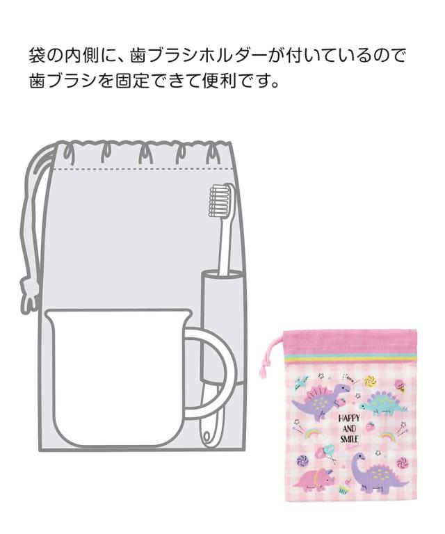 \今だけ10%OFF/ コップ袋 歯ブラシホルダー付き 巾着 キャラクター 保育園 巾着袋 小 コップ入れ 巾着 コップ 持ち運び 女子 女の子 男子 子ども 給食袋 コップ巾着 幼稚園 小学校 給食 お弁当 ランチ きんちゃく袋 かわいい 恐竜 車 KB62