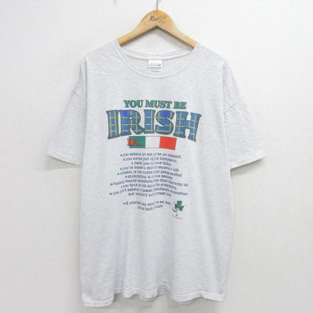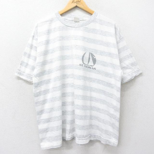 古着 半袖 ビンテージ Tシャツ メンズ 00年代 00s STARKEY 大きいサイズ クルーネック 薄グレー 霜降り XLサイズ 中古 中古 古着