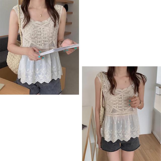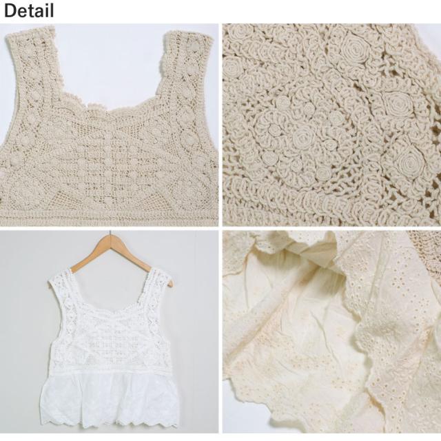 全品送料無料一部除く クロシェ編み 刺繍レース ドッキングビスチェ ma【即納】韓国カジュアル 韓国ガーリー フレンチガーリー 春 夏 秋 チュニック キャミ フラワーレース 重ね着 レディース 韓国 Y2Kファッション 韓国ストリート 流行り トレンド かわいい