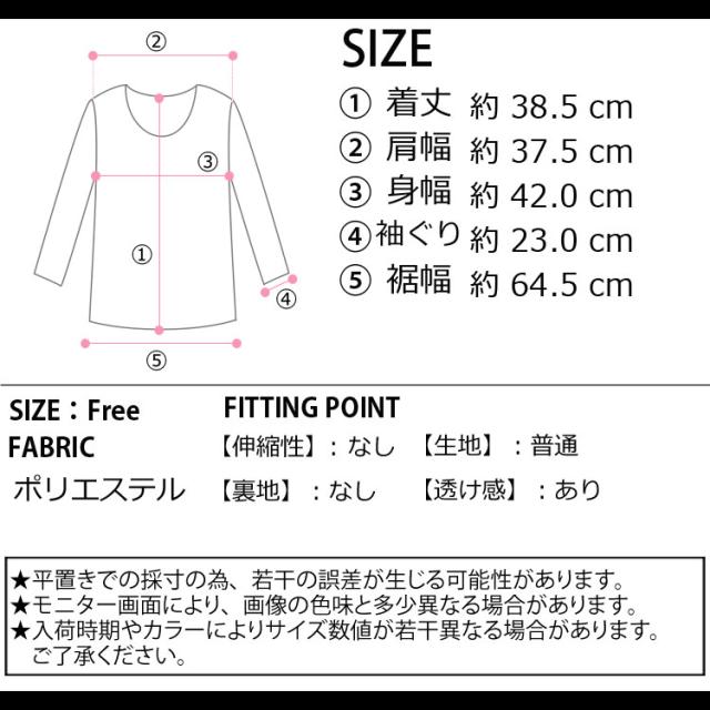 ■サイズ:着丈38.5cm 肩幅37.5cm 身幅42cm 袖ぐり23cm 裾幅64.5cm