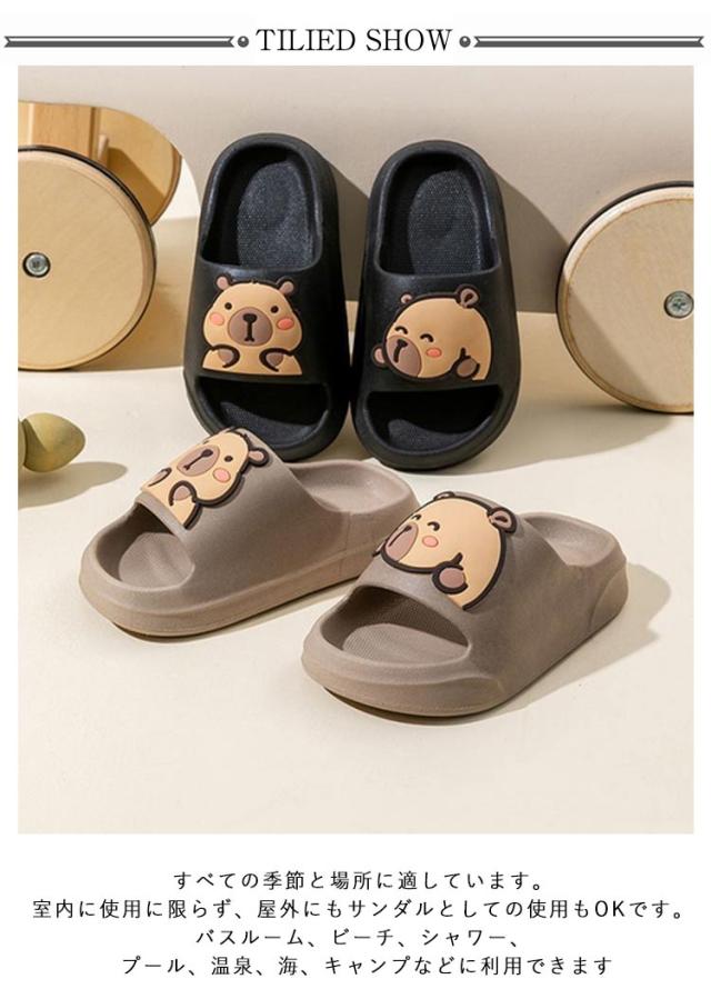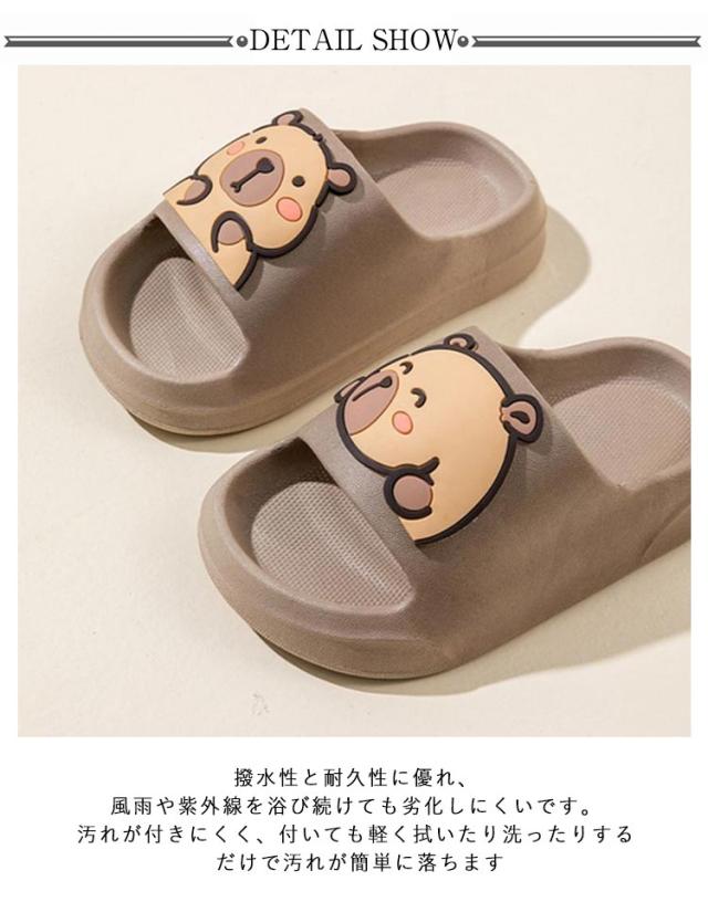 | クッション性が高く、ふわふわした肌ざわりで、着地時の衝撃を吸収し、履き心地よいです 環境にやさしい無味・無臭EVA素材で作られて、軽量で柔らかく弾力性が高く、寒い場所などでも柔軟性を保ちます。 撥水性と耐久性に優れ、風雨や紫外線を浴び続けても劣化しにくいです。汚れが付きにくく、付いても軽く拭いたり洗ったりするだけで汚れが簡単に落ちます。 靴底の凹凸ストライプは地面との摩擦を増大し、水のある場所に滑りにくいです。 子供の足型によって設計されて、フィット感が高いです。 すべての季節と場所に適しています。室内に使用に限らず、屋外にもサンダルとしての使用もOKです。バスルーム、ビーチ、シャワー、プール、温泉、海、キャンプなどに利用できます | |