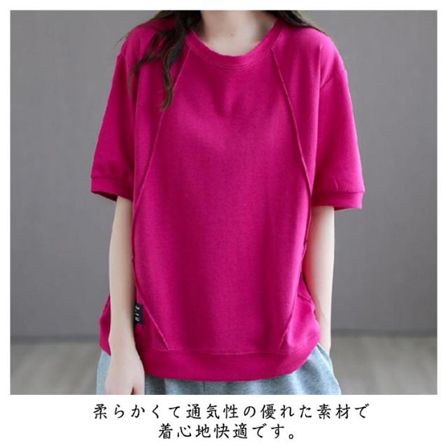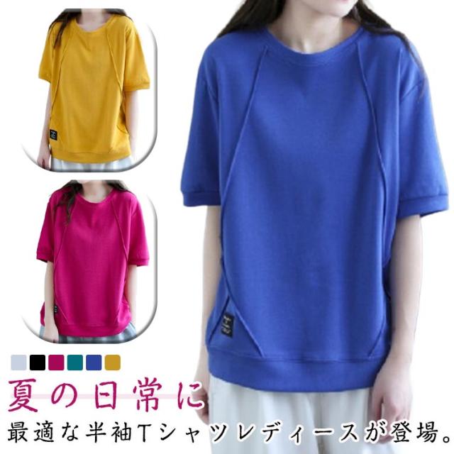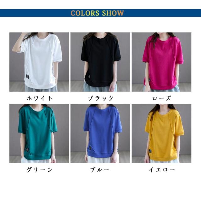 クルーネック 半袖Tシャツ トップス レディース 春夏 カットソー ゆったり 半袖Tシャツ 無地 快適 tシャツ インナー カジュアル ティーシャツ 薄手 普段着 ルームウェア 体型カバー シンプル 大人可愛い