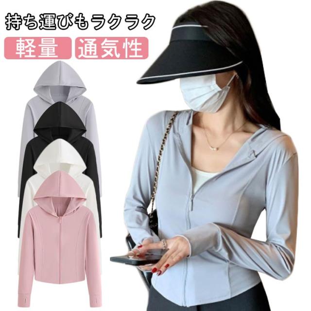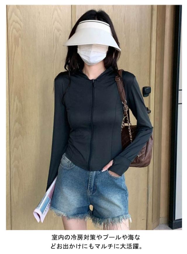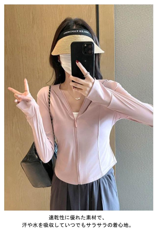 長袖 Vカット レディース トップス Vカット ラッシュパーカー 薄手 冷感 速乾 軽量 フード付き パーカー 大きいサイズ スリム UV パーカー 日焼け対策 夏用 アウター 体型カバー 羽織り ストレッチ 滑らか