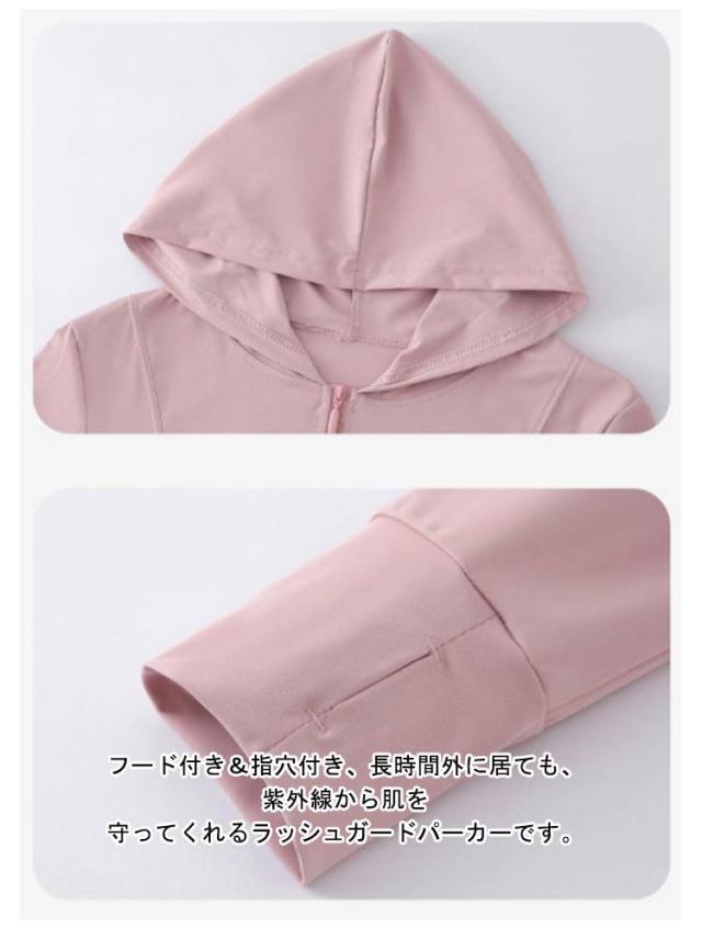 | 様々なシーンで使える定番のuvカットパーカー♪ 速乾性に優れた素材で、汗や水を吸収していつでもサラサラの着心地。 薄手で軽く持ち運びしやすい、まるで着ていないかのような着心地。 軽量・コンパクトでかばんの中にも入れとけて、持ち運びもラクラク! フード付き&指穴付き、長時間外に居ても、紫外線から肌を守ってくれるラッシュガードパーカーです。 室内の冷房対策やプールや海などお出かけにもマルチに大活躍。 | |