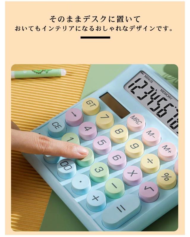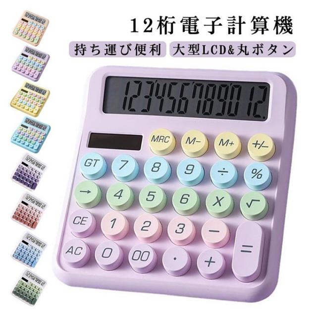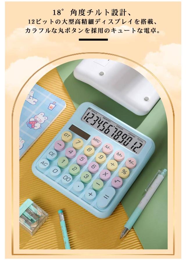 大型LCDディスプレイ 電卓 かわいい 12桁 計算機 12桁電子計算機 使いやすい 大きい 丸ボタン おしゃれ 大きめ 可愛い 滑り止め 持ち運び便利 簿記 数学の計算 家計管理 なオフィス 仕事
