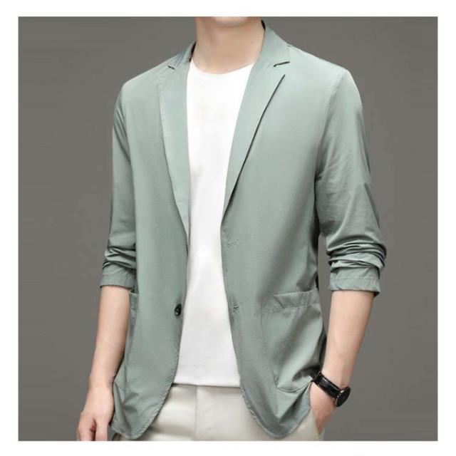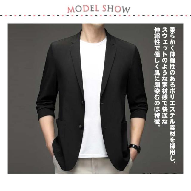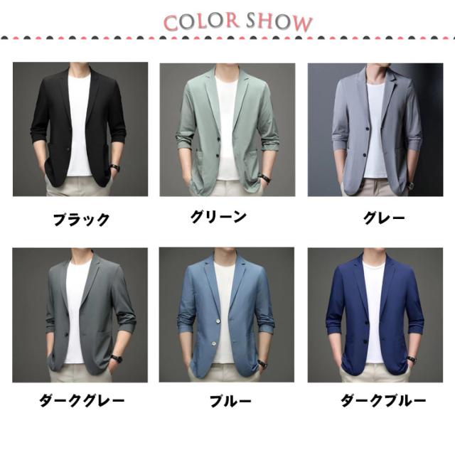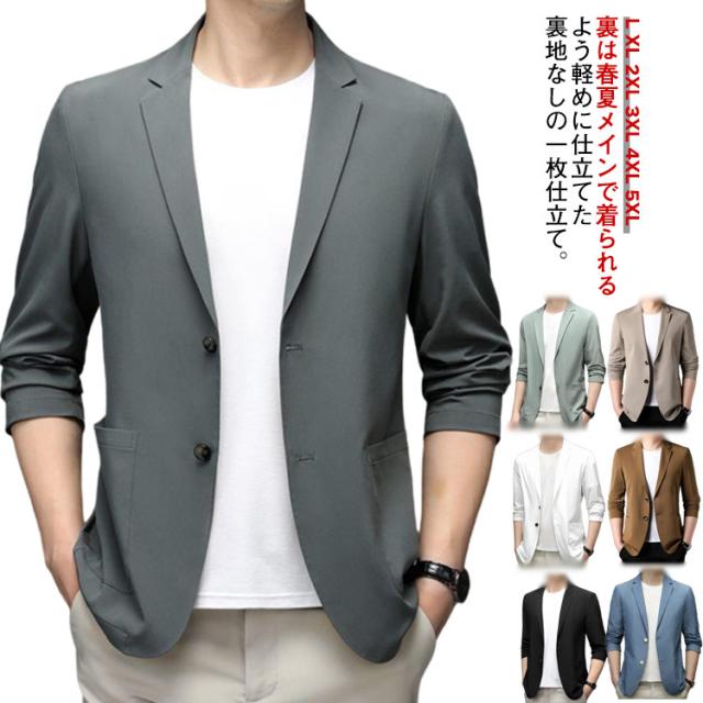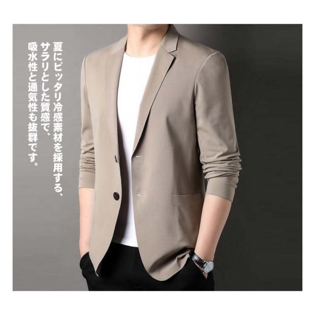 メンズ 無地 スーツジャケット 涼しい 春夏 ライトアウター サマージャケット テーラードジャケット 男性 スーツジャケット 大きいサイズ 長袖 紫外線対策 アイスシルク 無地 涼しい ストレッチ 軽量 おしゃれ カジュアル オフィス 仕事