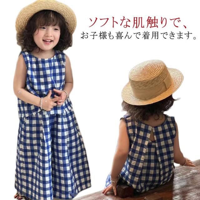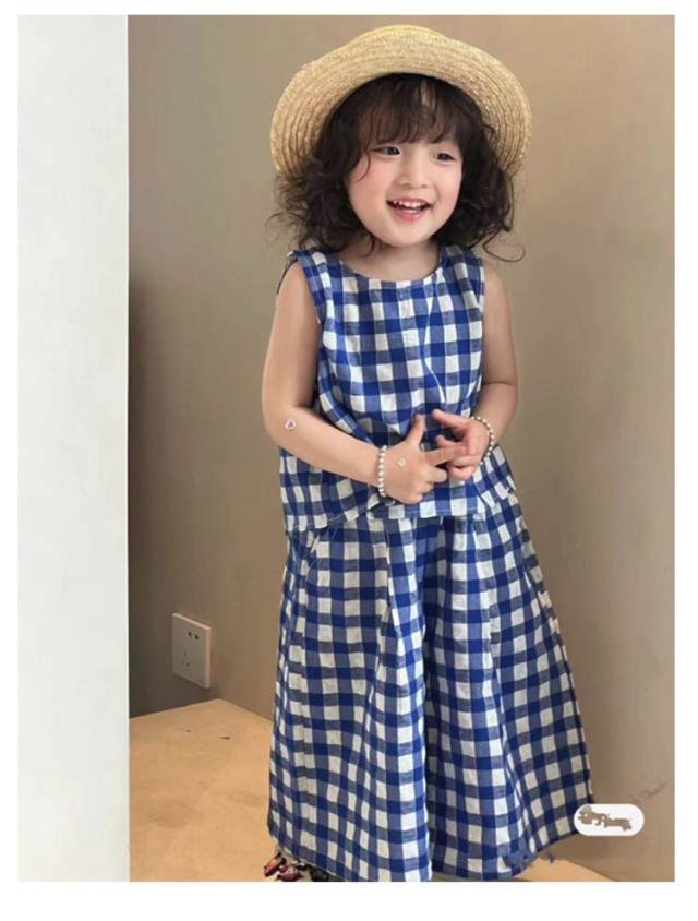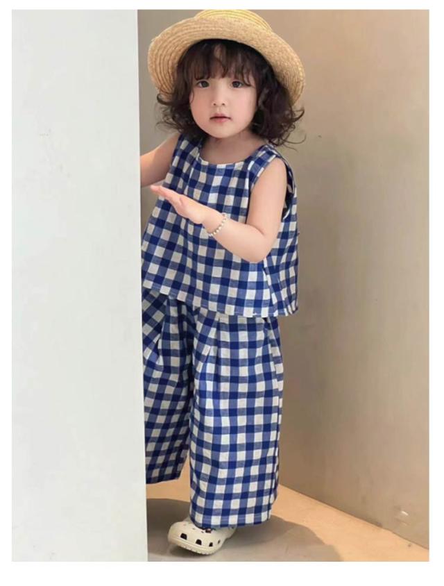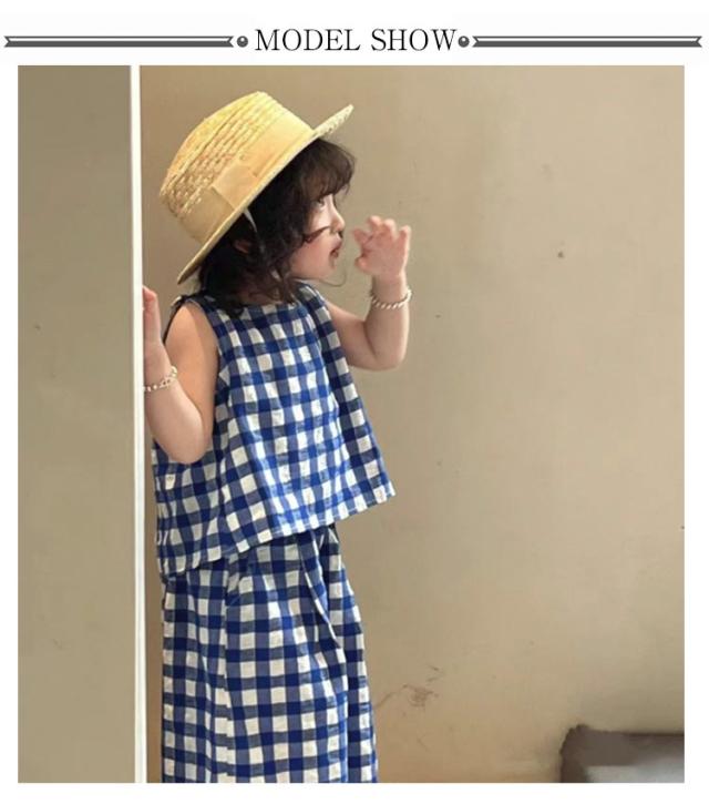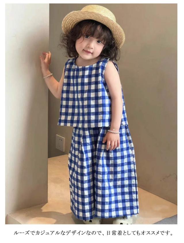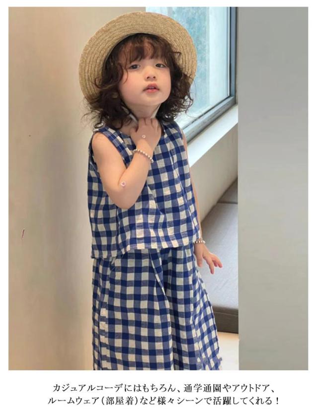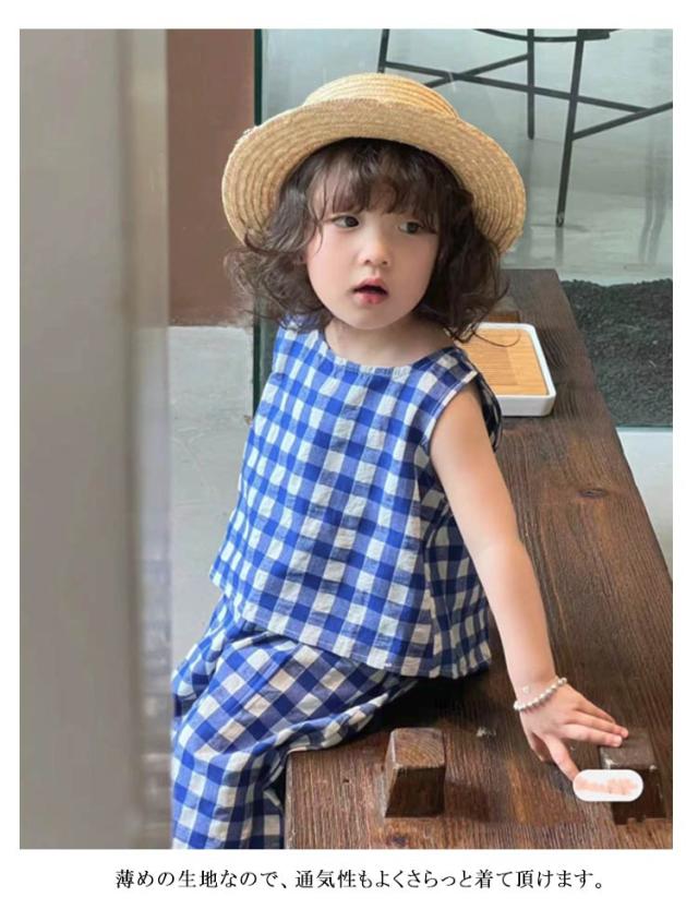 上下セット ブラウス チェック柄 韓国こども服 ノースリーブ 赤ちゃん トップス ワイドパンツ 女の子 おしゃれ 可愛い ナチュラル シンプル セットアップ セパレート 出産お祝い 春 夏 キッズ お出かけ 誕生日 子供服 プレゼント 入園