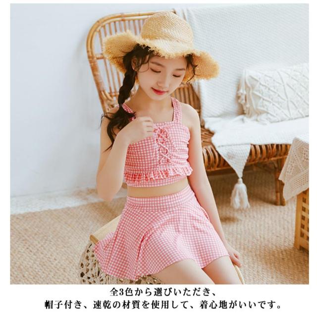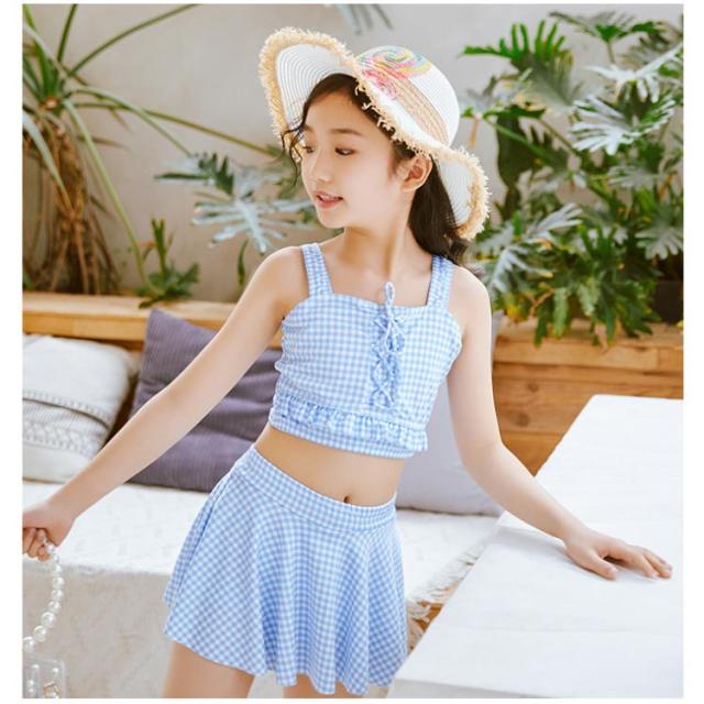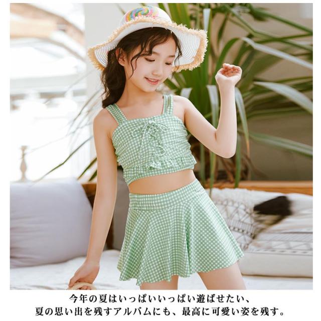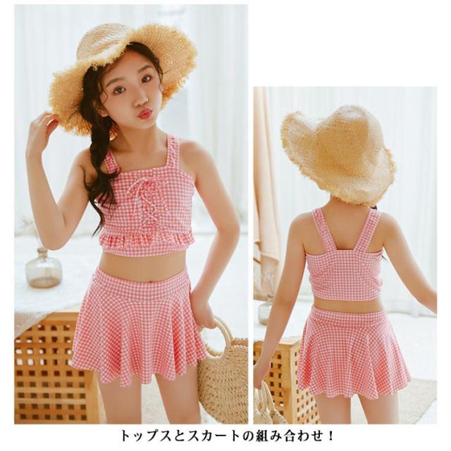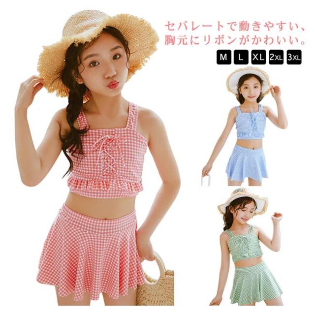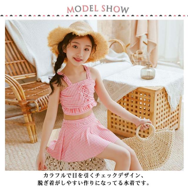 チェック柄 キッズ 水着 女の子 セパレート スカート 子供 水着 ノースリーブ 上下セット セットアップ 子供水着 キッズ水着 女の子水着 女児用 水遊び ジュニア かわいい スクール プール ビーチ 海水浴 練習用