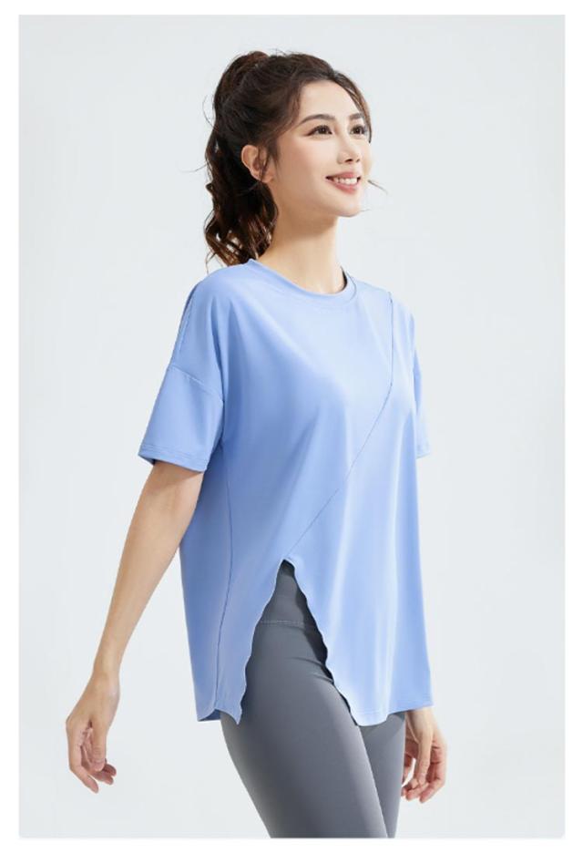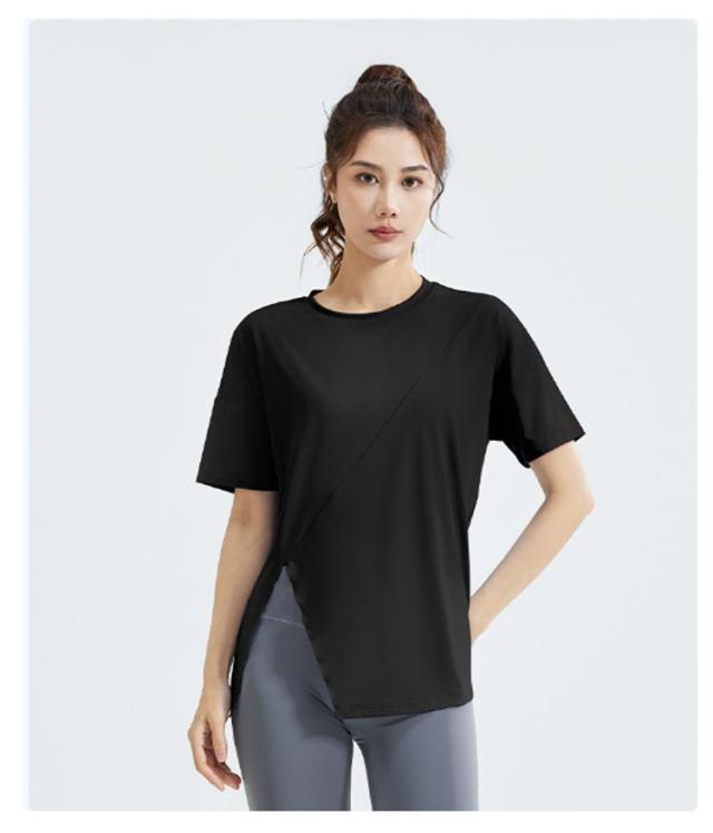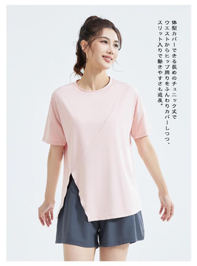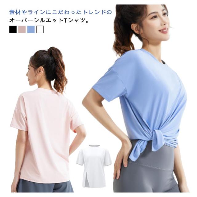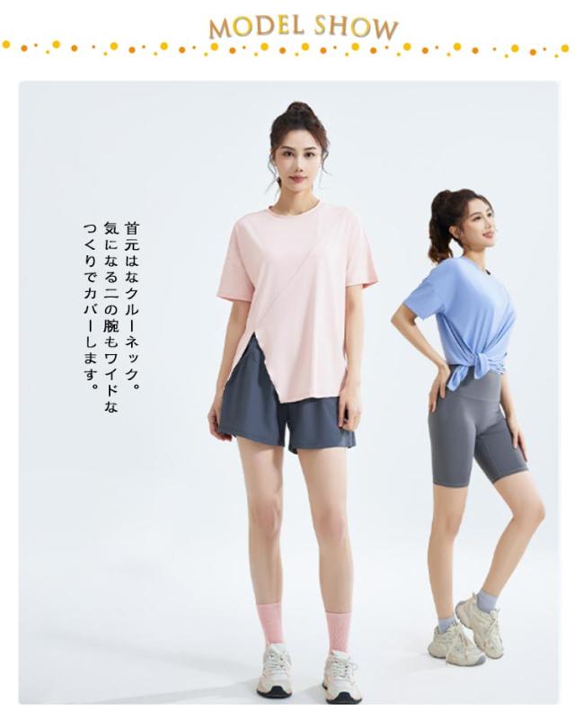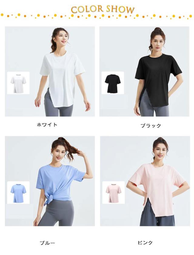 Tシャツヨガウェア ヨガ サイドスリット レディース Tシャツ トップス ホットヨガ ストレッチ 薄手 伸縮性 通気性 ラグランスリーブ 体型カバー ロング丈 シンプル 半袖 ピラティス 運動着 半袖 フィットネスウェア ブラック ホワイト ブルー