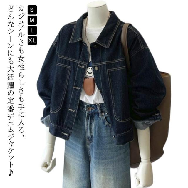 デニムシャツ デニムジャケット Gジャン 衿付き ジージャン ルーズ ジーンズ アウター デニム レディース ヴィンテージ加工 ワンウォッシュ ゆったり ジャケットアメリカン レトロ カジュアル ヴィンテージ 大人 春秋