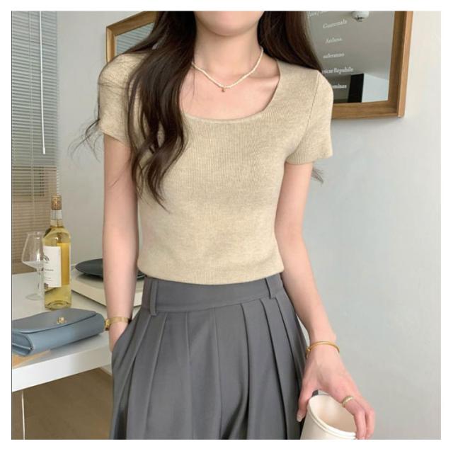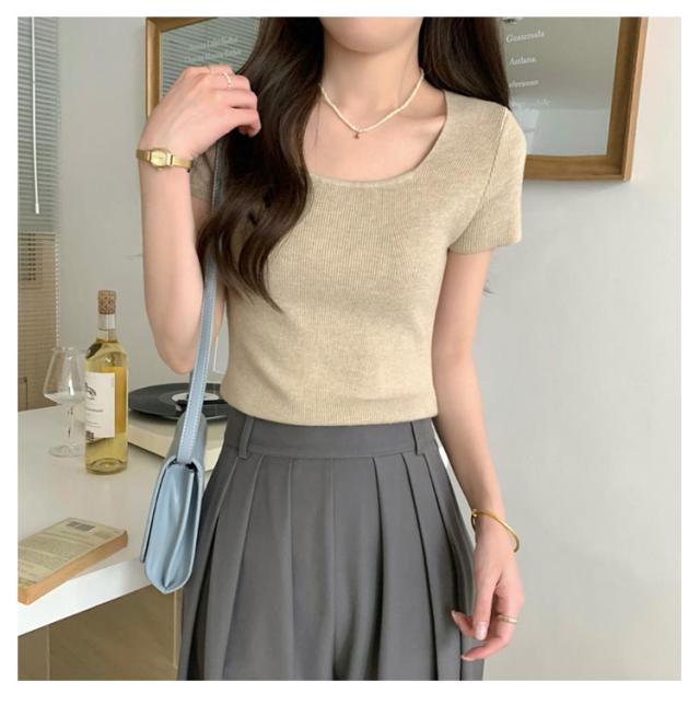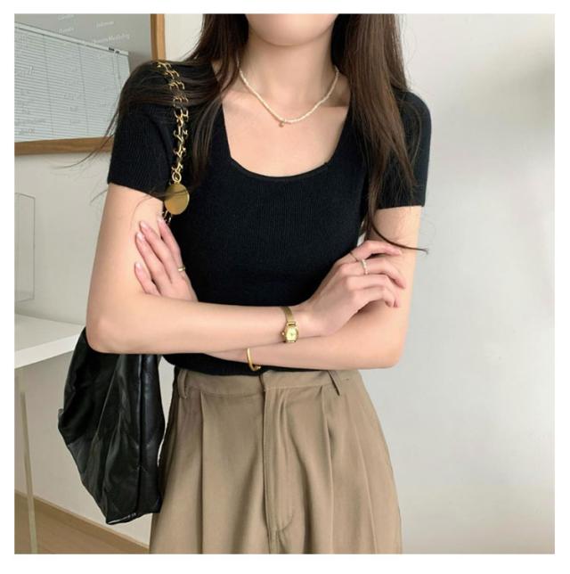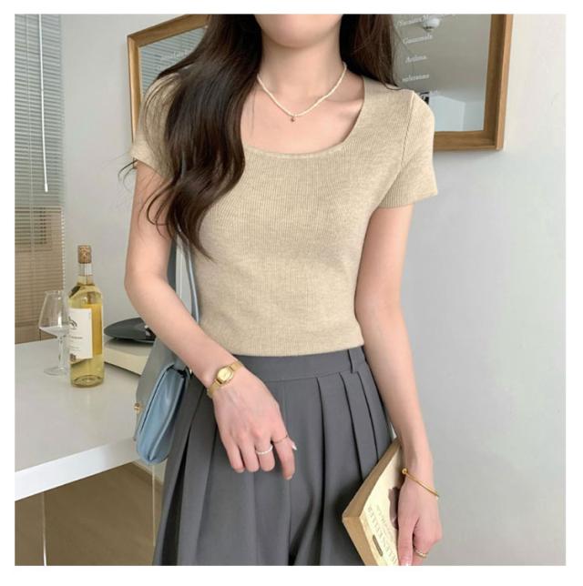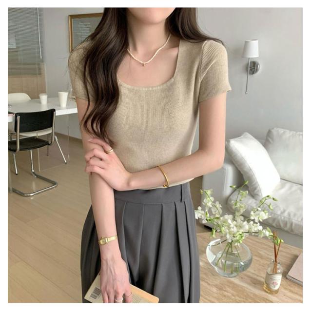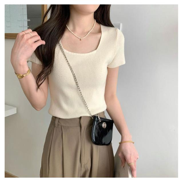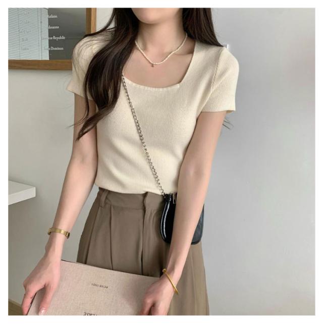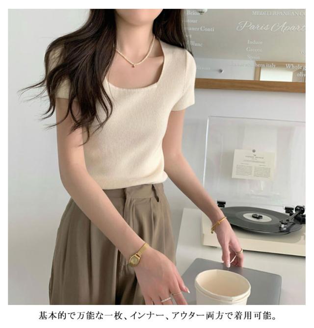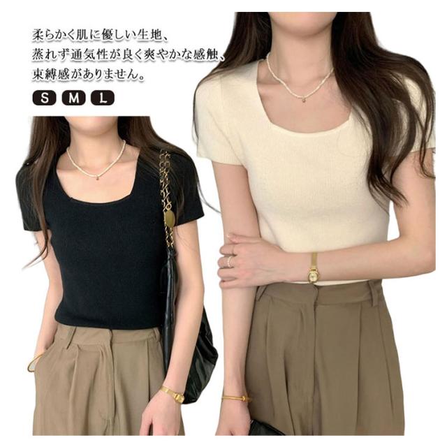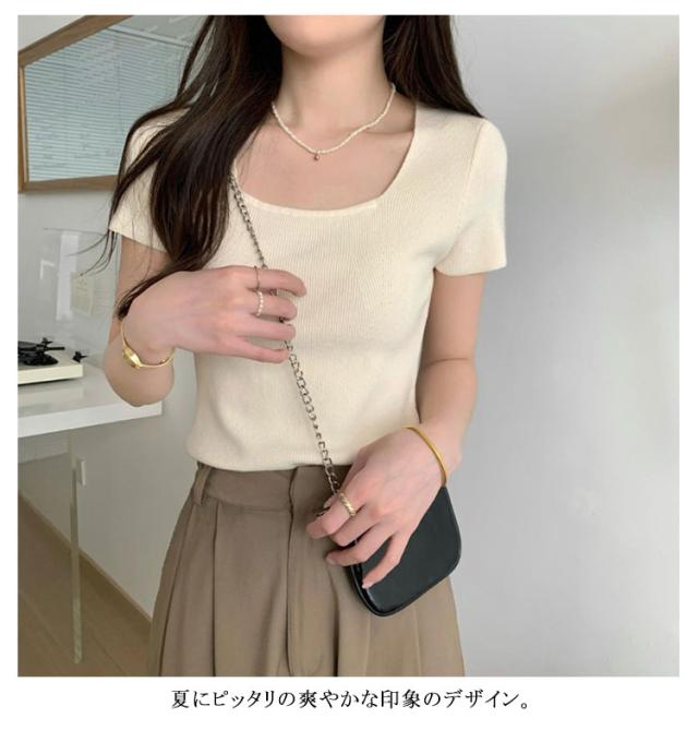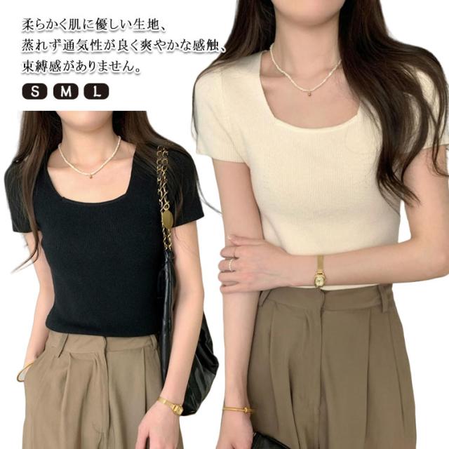 サマーニット 接触冷感 Tシャツ レディース 春夏 スリム ニットトップス ニット 半袖 スクエアネック Uネック ボートネック 無地 トップス ニット スイート アイスシルク コーデ 夏 女性用 エレガント プルオーバー シンプル 送料無料
