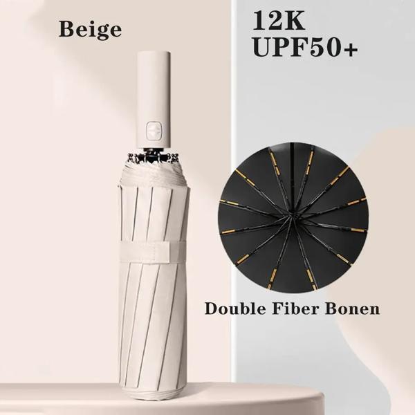 1pc 耐風折りたたみ自動傘雨黒コーティング 12 骨パラソル雨自動高級ビッグ防風傘