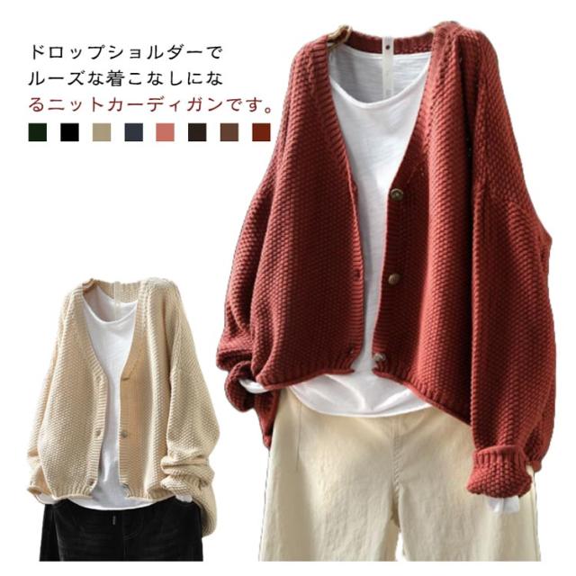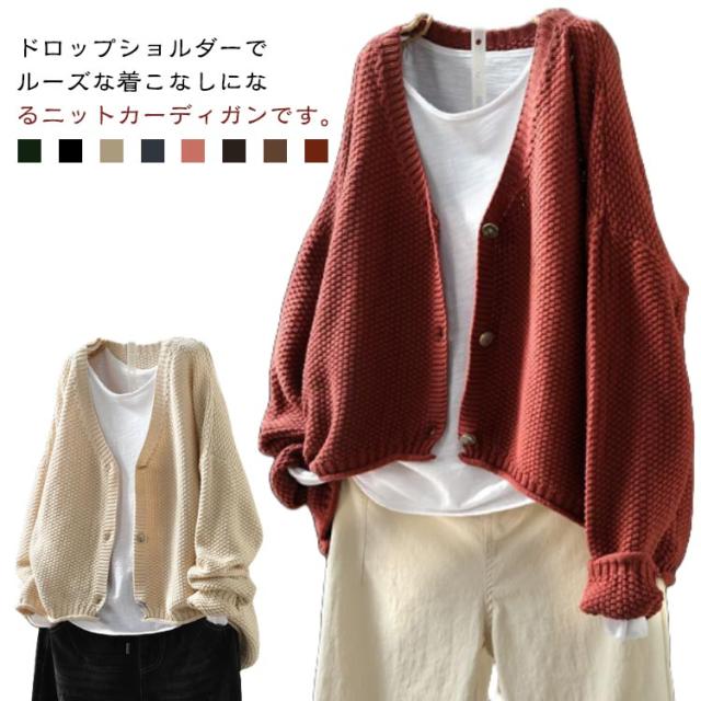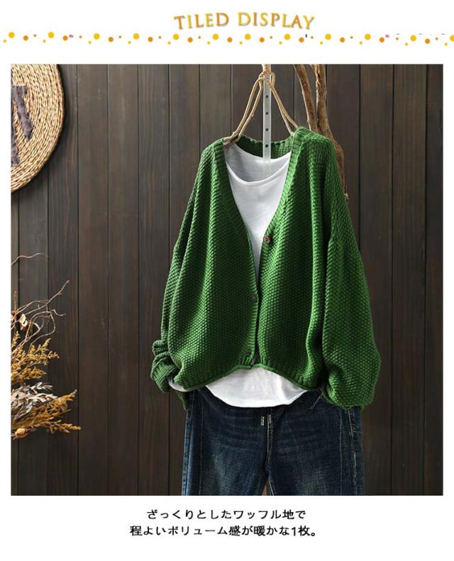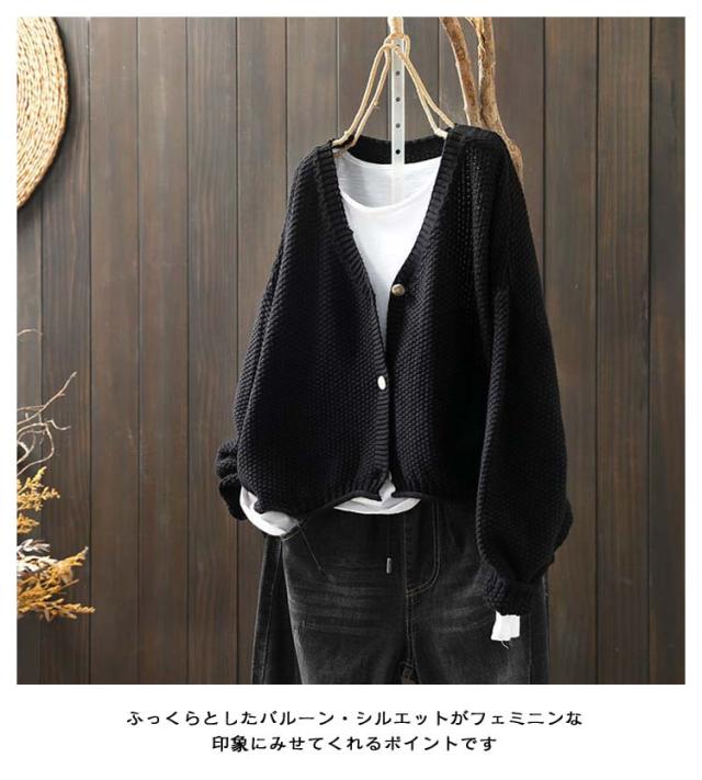 ボレロ ニットカーディガン セーター ニット レディース お尻が隠れる バルーン ゆるカーディガン ニットカーデ 羽織 春 長袖ワッフルニット カーデ 秋 長袖 ライトニット レイヤード 軽量 チュニック ニットカーディガン 大人カジュアル 大人可愛い フェミニン 無地
