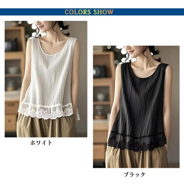 ノースリーブ ブラウス レディース 綿麻風 タンクトップ トップス 夏 ゆったり クルーネック コットン リネン おしゃれ カットソー カジュアル 着痩せ プルオーバー きれいめ シンプル