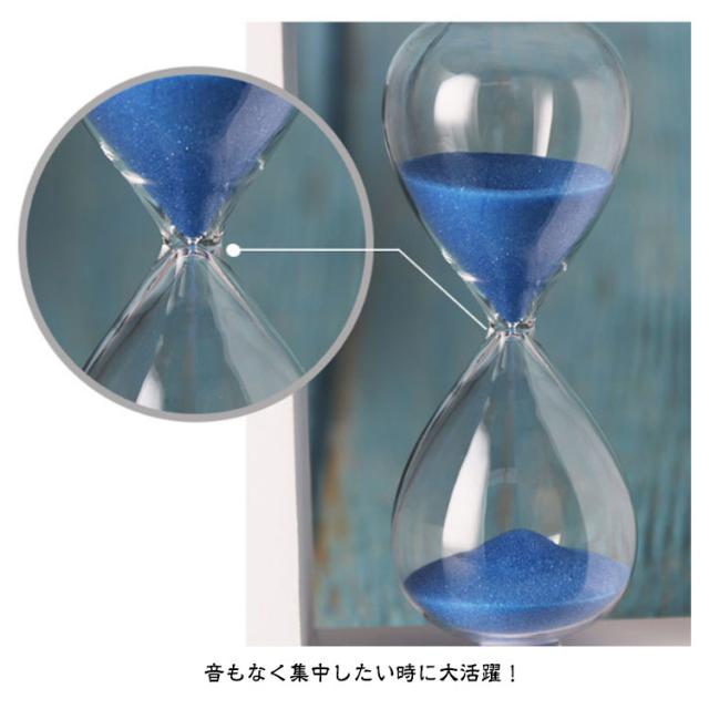 | ナチュラルな木枠付きの砂時計。【45分/60分】 温かみのある木のフレームはインテリアとしてもオシャレな見た目です。 書斎の本棚や窓際のスペース、キッチンのカウンターなど、オブジェとして飾るだけでも素敵な存在感です。 流れ落ちる砂にゆったりとした時間を感じます。 音もなく集中したい時に大活躍! 勉強やゲーム、キッチンからエクササイズ等さまざまなシーンで活躍します。 | |
