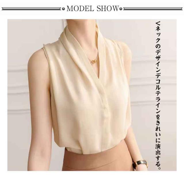 トップス ノースリブ タンクトップ ノースリブラウス 大人女性 シャツ レディース 大きいサイズ シャツブラウス きれいめ vネック 無地 ゆったり ブラウス 春夏 タックノースリーブ OL オフィスカジュアル 通勤 ビジネス おしゃれ