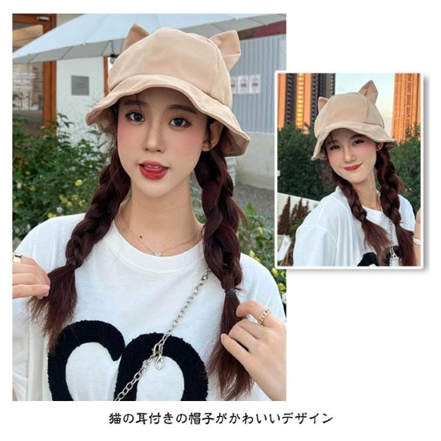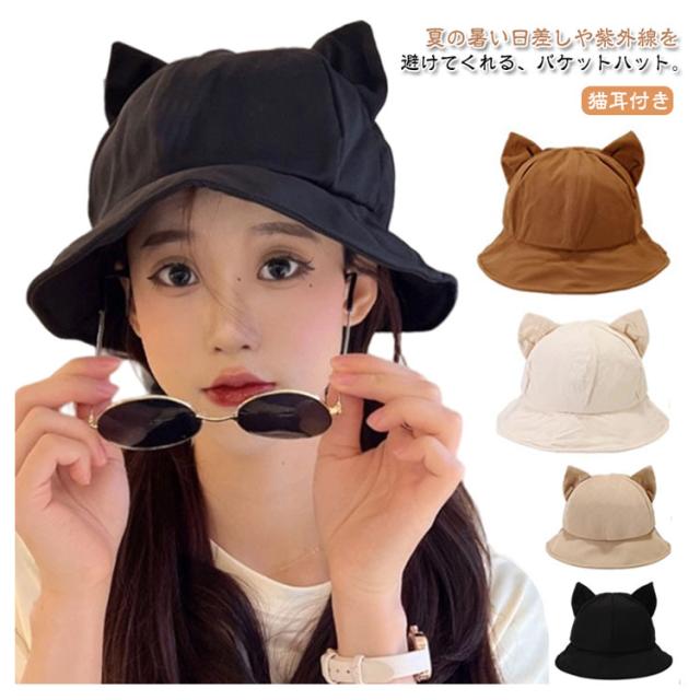 バケットハット ハット 猫耳付き バケット 帽子 レディース 小顔効果 春夏 日除け帽子 学生 猫耳 かわいい おしゃれ UV UVカット 遮光 日よけ 完全遮光 折りたたみ サイズ調整 春 夏 猫耳付き 日焼け防止 無地 シンプル 韓国 つば広 通学 旅行 散歩 お出かけ