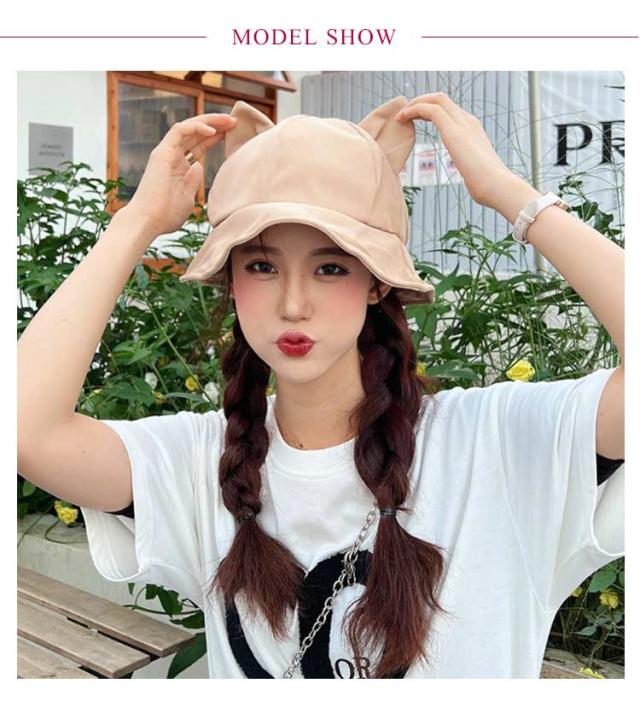 | 夏の暑い日差しや紫外線を避けてくれる、バケットハット。【猫耳付き】 猫の耳付きの帽子がかわいいデザイン 小顔効果も期待できる、広め設計のつばも◎ 使い勝手の良い、なカラー展開でご用意いたしました。 | |