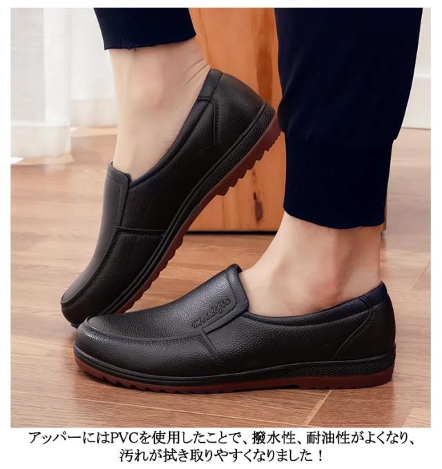 | 脱ぎ履きラクラク・滑りにくい・疲れにくい。男女兼用コックシューズ。 軽量性、耐久性に優れている。滑りにくいラバー底が付いている。 アッパーにはPVCを使用したことで、撥水性、耐油性がよくなり、汚れが拭き取りやすくなりました! 靴底にはPVCを使用。水と油に強くすべりにくい。耐摩耗性があり耐久性向上。 飲食店厨房、食品製造調理場、病院、作業現場、立ち仕事などにオススメです。 病院の先生・看護師さんにもおすすめ! 防水性と柔軟性に優れ、作業用、農業、園芸、洗車などの際にも活躍してくれる。 | |