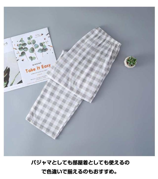 ルームウェア レディース ルームパンツ 可愛い 春 夏 薄手 綿 ボトムス パジャマ 部屋着 寝巻き ポケット ウエストゴム ひも ウエスト調節 パジャマ 部屋着 寝巻き ポケット 春 夏 さらさら チェック カラバリ豊富 リラックス