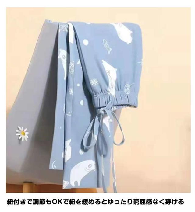 | 誰でも穿きこなしやすい!ストレートシルエット 脚のラインを拾いにくいストンとしたシルエットで程よくゆったりとした穿き心地に。 「全5タイプから選べる」豊富なデザイン リラクシーなチェック柄と可愛い動物柄をご用意。 パジャマとしても部屋着としても使えるので色違いで揃えるのもおすすめ。 「紐で調節もできる」楽ちんウエストゴム ウエストゴムでお腹周りがノンストレスに。 紐付きで調節もOKで紐を緩めるとゆったり窮屈感なく穿ける | |